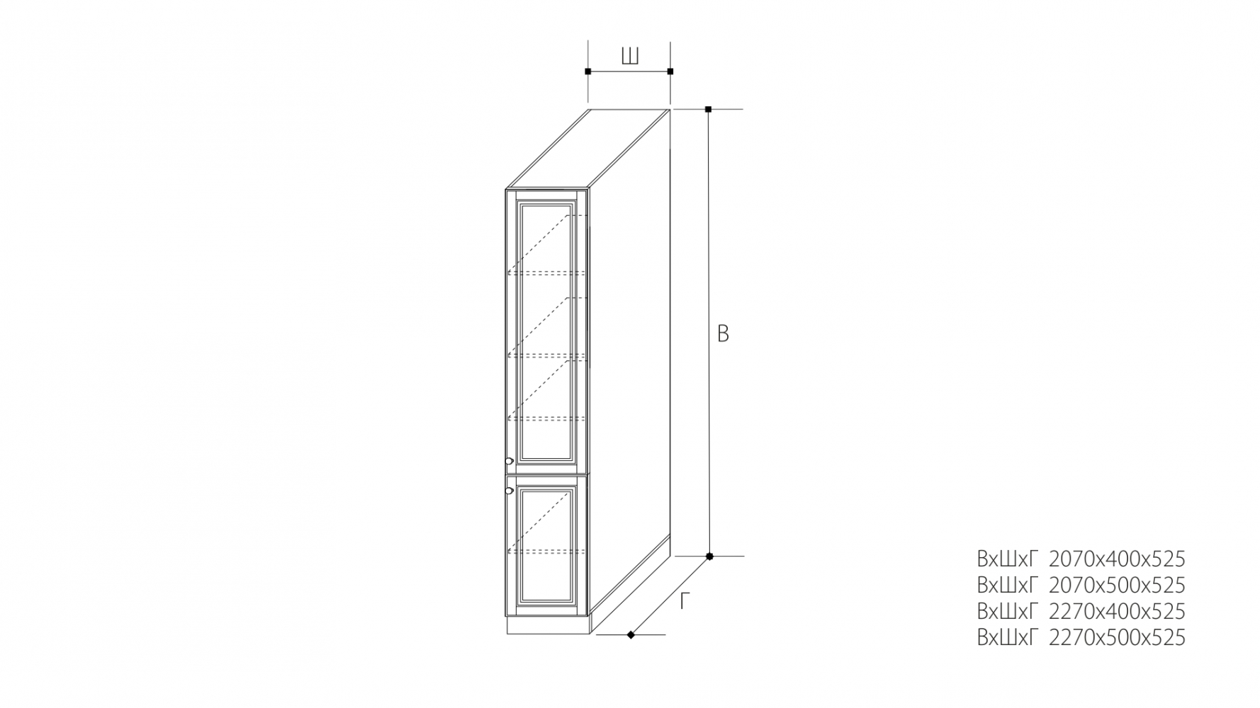 ВхШхГ: 2070х400х525 мм.